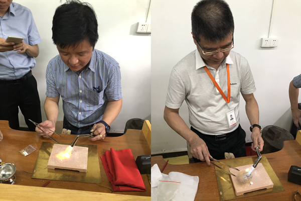 培訓(xùn)由廣州市工藝美術(shù)大師、國(guó)家貴金屬首飾制作高級(jí)技師周鏡釗主持。通過(guò)深入淺出的方式,培訓(xùn)師現(xiàn)場(chǎng)演示了黃金鑒別的方法,教授了“七青,八黃,九五赤”的獨(dú)特口訣,讓學(xué)員從零基礎(chǔ)到快速掌握黃金成色、質(zhì)量鑒別技能。培訓(xùn)課程還讓學(xué)員操作專(zhuān)業(yè)器械,親身體驗(yàn)了燒金技巧。通過(guò)本次內(nèi)部培訓(xùn),讓公司管理人員進(jìn)一步了解對(duì)黃金業(yè)務(wù)的認(rèn)識(shí),提高對(duì)公司經(jīng)營(yíng)業(yè)務(wù)的關(guān)注度。同時(shí)通過(guò)培訓(xùn)學(xué)習(xí),提振精神面貌,打造良好的企業(yè)文化。