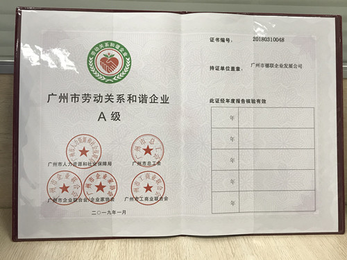 近日,穗聯(lián)公司獲“廣州市2018年勞動關(guān)系和諧企業(yè)A級”稱號,是對穗聯(lián)公司始終堅持“為客戶創(chuàng)造價值,為員工創(chuàng)造幸?!钡睦砟?,一直致力于打造和諧勞動關(guān)系,把員工視為企業(yè)的第一資產(chǎn),關(guān)心關(guān)愛職工,維護(hù)職工合法權(quán)益,以人才引領(lǐng)創(chuàng)新,以創(chuàng)新驅(qū)動發(fā)展做法的充分肯定。