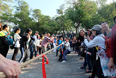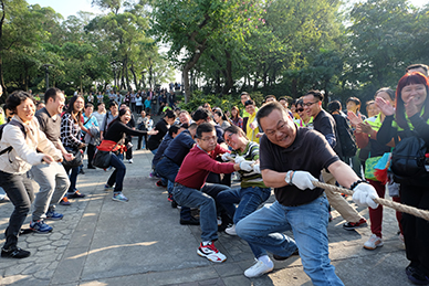 登山過(guò)程中,全體員工不怕苦,不怕累,緊跟公司領(lǐng)導(dǎo)班子的步伐,還不時(shí)跟同伴交流下工作或生活趣事,在歡樂(lè)的笑聲中努力向白云山頂進(jìn)發(fā)。到達(dá)山頂廣場(chǎng)后,我司組織大家分成五組,每組由6男4女的組成,舉辦了拔河比賽。聽(tīng)著那一句句“一二,一二”的節(jié)奏聲和拉拉隊(duì)嘶聲力竭的“加油”聲。為爭(zhēng)奪第一,每支隊(duì)伍都積極配合,竭盡全力奮斗拼搏,毫無(wú)保留,他們用行動(dòng)展示了穗聯(lián)人奮發(fā)向上、齊心合力為共同目標(biāo)而頑強(qiáng)拼搏的精神。