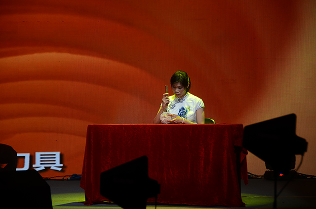 展示會(huì)上,仇玉英大師代表女技師創(chuàng)新工作室上臺(tái)進(jìn)行鏤雕牙雕技術(shù)的展示,看著她手持象牙球從容地用雕刻刀在牙球最外一層雕刻花紋,鑿工把里層逐層鑿成精細(xì)的各種圖案,精致的圖案栩栩如生地般“跳出來(lái)”,不禁令人驚嘆她精湛的技藝。