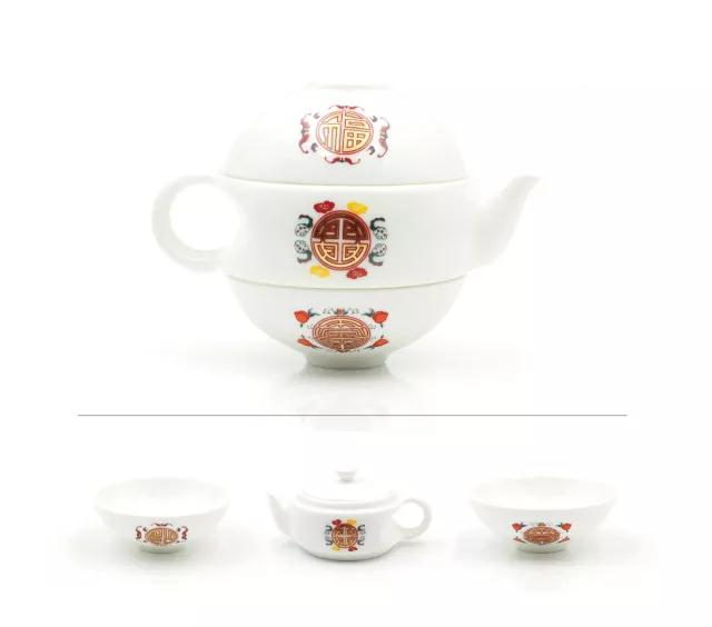 《福祿壽齊福壺》小巧玲瓏,茶壺和兩個茶杯連成一體,杯身和壺身分別應用了精心設計的“福”“祿”“壽”圖案,盡顯對美好生活的向往和祝福。