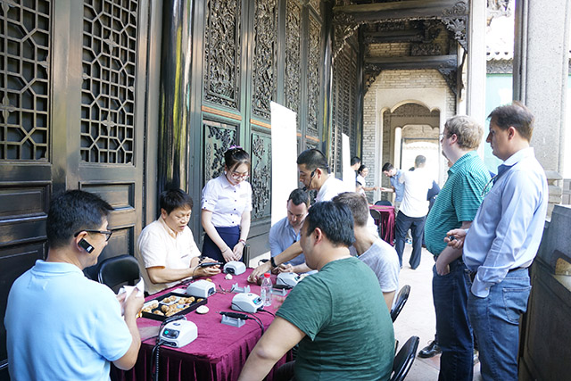9月15日上午,“世界航線發(fā)展大會”的貴賓一行數(shù)十人來到廣東民間工藝博物館(陳家祠),參觀并體驗了以象牙果雕刻、廣州欖雕等為代表的“第一?!眰鹘y(tǒng)民間工藝活動?!暗谝桓!惫に嚸佬g(shù)大師李景坤、工藝美術(shù)技師楊建國現(xiàn)場演示了傳統(tǒng)手工技藝。